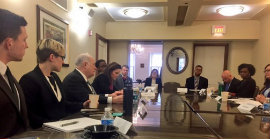 That afternoon, fellows had a chance to meet and practice interview skills with PAF Alumni. Alumni Jonathan Nurse, CCAS BA ’99 MPA ’01, Carrie Potter GWSB BBA ’99 MBA ’01, Daniel Bernstein, CCAS BA ’09, GWSB MBA ’11, Sandra Perez-Hawthorne, CCAS BA ’09, ESIA MA’11, Cameron Smither CCAS BA’12 MPP ’14, and Darrin Kayser CCAS BA ’98, GSPM MA ’00, in addition to PAF Program Director Robert Snyder, conducted mock interviews with current PAFs. In our group reflection on the mock interviews, we focused on how to effectively convey our PAF experiences as transferrable skills in the workforce. The PAFs and alumni agreed that the speed interviewing session was an excellent opportunity and are grateful to Darrin for initiating it as part of the previous year’s spring training.