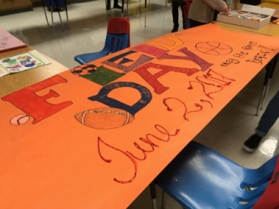 Both GW offices host PAFs: second-year PAF, Zinhle Essamuah, at the MSSC, and first-year PAF, Marisa Cordon, at the Nashman Center, who coordinated our efforts as PAFs to serve during the afternoon at the West Education Campus. Marisa was joined by her entire first-year cohort – PAFs Dor Hirsh Bar Gai, Grace Mausser, Zunara Naeem, and Alex Wang, as well as second-year PAFs Marcus Andrews, Angela Sako, and Katie Wynne. Second-year PAF Zinhle Essamuah also participated in the day through her placement. Members of the PAF Advising Team, Robert Snyder, Toby Davidow and Peter Konwerski rounded out our group, who engaged in sorting books, cleaning classrooms, and drawing and decorating banners with copious amounts of glitter.