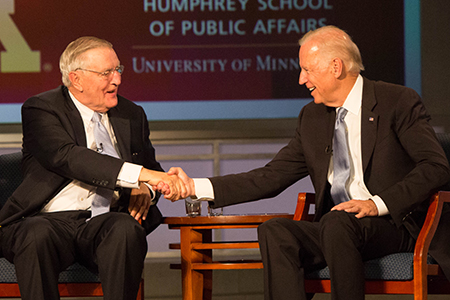 On Tuesday, October 20, the Trachtenberg School and the University of Minnesota co-hosted a daylong policy forum honoring the former Vice President, Walter Mondale. The forum was divided into four panel discussions on Mr. Mondale’s legacy in shaping the Vice Presidency, education policy, national security policy, and civil rights. Other speakers in attendance included Vice President Joe Biden, Senator Dianne Feinstein, and Senator Patrick Leahy.